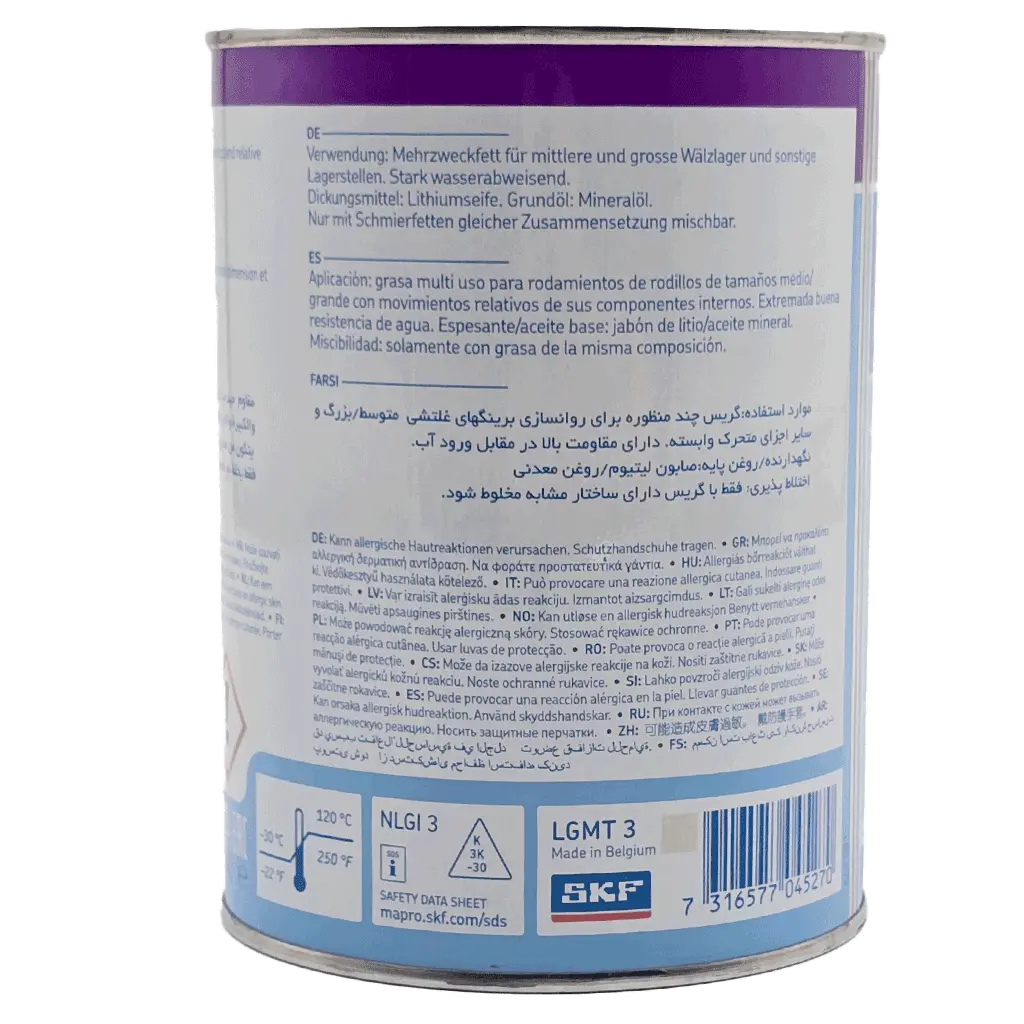 گریس SKF LGMT 3/1 محصولی چندمنظوره و باکیفیت از شرکت معتبر SKF بلژیک که بهطور ویژه برای کاربردهای عمومی و صنعتی طراحی شده ، این گریس با ویژگیهای برجستهای که داره ، انتخابی مناسب برای روانکاری قطعات مختلفه :
